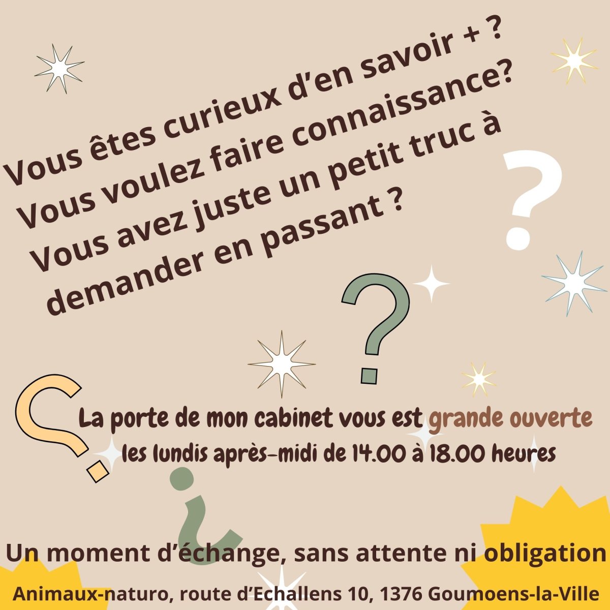 Tous les lundis après-midi, je vous accueille pour un moment de partage sans obligation.