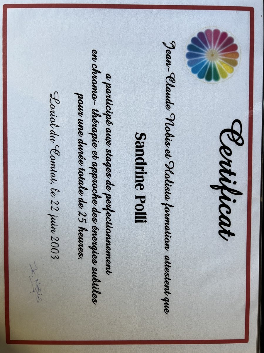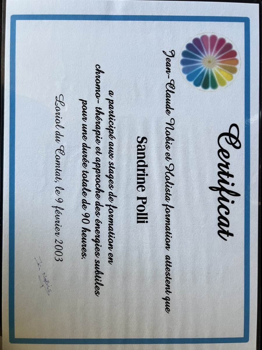 Chromothérapie auprès de Holista Formation, Loriol-du-Comtat, France certificat niveau 1 certificat niveau 2